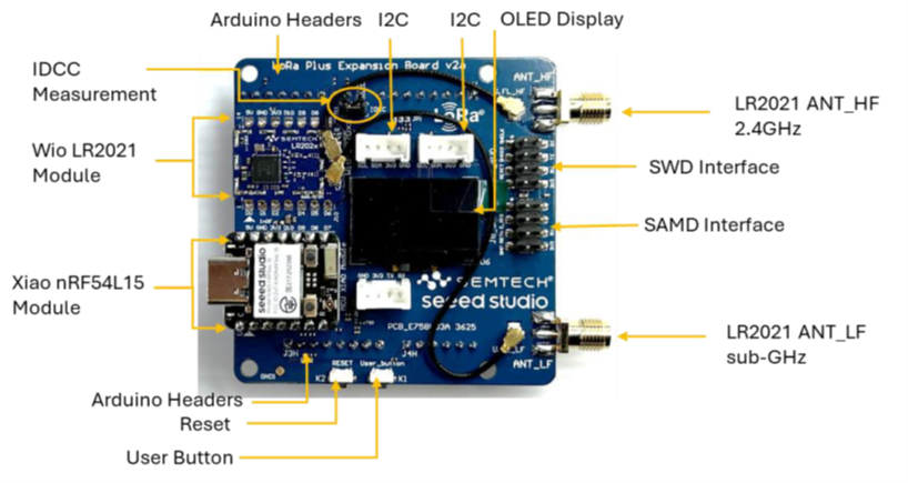 The Evaluation kit incorporates 2 x LoRa Plus™ expansion boards, populated with Wio-LR2021 & Xiao nRF54L15 modules and accessories, configured for Europe EU868 and global 2.4GHz Industrial, Scientific and Medical (ISM) bands.